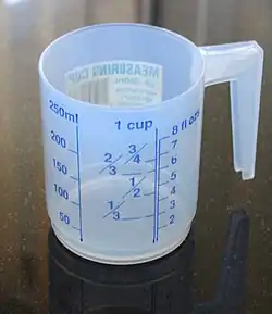 - ↑ Cup (unit) (en), Cup (Raummaß) (de)