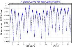 - ↑ (en) * tau CMa -- Eclipsing binary of beta Lyr type sur la base de données Simbad du Centre de données astronomiques de Strasbourg.