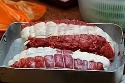 La viande se caractérise par un faible taux de graisse et une couleur rouge soutenue. Elle est savoureuse et parfumée. L'élevage en plein air lui donne des caractéristiques propres à cette viande.