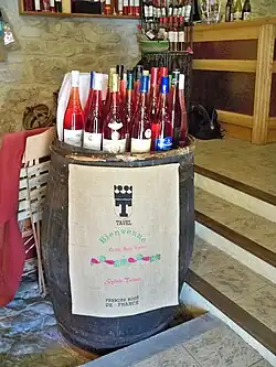 Tavel donne son nom à l'AOC viticole, connue bien au-delà des frontières françaises.