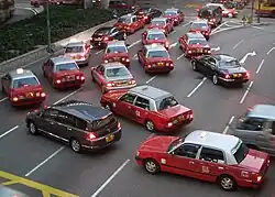 En 2018, il y avait un total de 18,163 taxis à Hong Kong[1], comprenant 15 250 taxis urbains (de couleur rouge), 2 838 taxis pour les Nouveaux Territoires (de couleur verte) et 75 taxis pour Lantau (de couleur bleue). Ils desservent quotidiennement environ 1 million de passagers.
