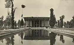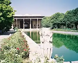 Ce bâtiment, dont la datation reste très discutée, a sans doute été élevé sous le règne de Shah Abbas II, puis redécoré dans les années 1870. Selon un poème inscrit sur l'édifice et un autre de Muhammad Ali Sahib Tabrizi, il aurait été édifié en 1647-1648, et si certains chercheurs pensent que cet édifice a été construit en plusieurs étapes, la plupart inclinent à penser qu'il fut construit en un seul jet, car il est assez cohérent[1]. Le plan du jardin daterait peut-être de Shah Abbas Ier, auquel Kaempfer attribue tout le dessin des plans du Chāhār bāq.