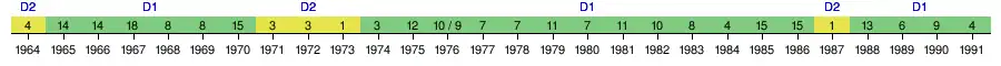| 1992 | 1re | 5e | 35 | 18 | 9 | 7 | 2 | 30 | 12 | +18 | Vainqueur |