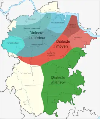 - Dans le dialecte supérieur, on trouve les parlers suivants :
