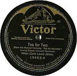 Tea for Two (thé pour deux, en anglais) est une chanson d'amour américaine, composée par Vincent Youmans et écrite par Irving Caesar, pour leur comédie musicale No, No, Nanette créée à Broadway à New York en 1924[2]. Elle est interprétée en duo par Nanette (Louise Groody) et Tom (Jack Barker) dans l'acte II par lequel ils chantent leur rêve de vivre heureux en couple. Elle est enregistrée en par Marion Harris pour le label Brunswick, classé en tête des ventes de disques[3].