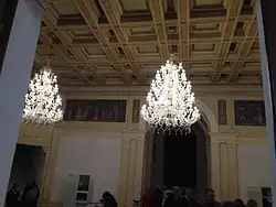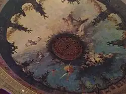 Les peintures ont été réalisées par Giuseppe Mancinelli, comme la voûte centrale intitulée Daphné dans un bois peuplé de nymphes, les médaillons monochromes du vestibule et les parapets aux angelots. Les décorations picturales sont de Gustavo Mancinelli (fils de Giuseppe). Les frises en bois et en papier mâché sont de Giuseppe Nicolini.