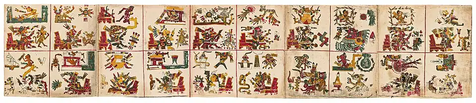 - ↑ (es) Otilia Meza, El Mundo Mágico de los Dioses del Anáhuac, Mexico, Editorial Universo México, , 135, 136, 137, 138, 139, 140, 141, 142 (ISBN 968-35-0093-5)