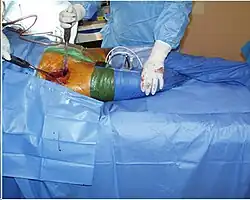 - Une table d’opération ordinaire est utilisée, sans aucun système de cale ou de traction.