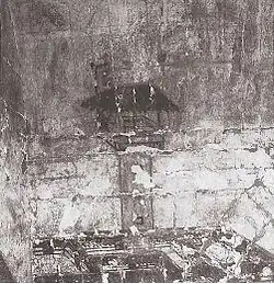 Le bois est le principal matériau de construction de l'architecture Han. Il est utilisé pour construire de grands palais, des tours sur plusieurs étages, des constructions résidentielles à étages et des demeures humbles[153]. Toutefois, en raison de la dégradation rapide du bois dans le temps et de sa sensibilité au feu, les plus anciens bâtiments chinois en bois, certains bâtiments du temple du Mont Wutai, datent de la dynastie Tang (618-907)[154]. L'historien architectural Robert L. Thorp remarque la rareté des restes archéologiques de la période Han, ainsi que les sources littéraires et artistiques de l'époque Han souvent peu fiables utilisées par les historiens pour trouver des indices sur l'architecture Han inexistante[155]. Ces seuls restes archéologiques de cette époque sont des murs en ruine constitués de briques et de terre damée (dont des murs de cités ou de tombes enterrés), des plates-formes de terre damée utilisées pour le terrassement des autels et salles, des portes funéraires en pierre ou en briques et des tessons de tuiles en céramique qui ornaient les toits des salles en bois[156],[157]. Des sections en terre damée de la Grande Muraille existent encore aujourd'hui dans la province du Gansu, avec les ruines de frontières hérissées de trente tours d'observation et de deux châteaux forts[158]. Les murs des villes et forts frontaliers des Han en Mongolie-Intérieure sont traditionnellement construits avec des briques en argile au lieu de terre damée[157].