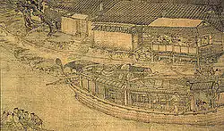 Il existe dans la littérature chinoise de nombreuses descriptions des activités portuaires, du commerce maritime, du commerce extérieur et des navires de commerces eux-mêmes. En 1117, l'auteur Zhu Yu écrit non seulement sur la boussole magnétique, mais également sur une ligne de cent pieds avec un crochet sur le pont du navire, utilisée pour collecter des échantillons de vase au fond de la mer afin que l'équipage puisse en déduire la position du navire en fonction de l'odeur et de l'apparence de la vase[75]. De plus, Zhu Yu décrit des compartiments à cloisons étanches dans la coque des navires afin de se prémunir d'un échouage en cas de dommage de la coque la voile aurique, les voiles tendues sur un mat et la méthode pour battre le vent[76]. Confirmant les écrits de Zhu Yu sur les bateaux à coques compartimentées, un navire datant de 1277 de près de 24 m de long et 9 m de large est découvert en 1973 sous l'eau près de la côte méridionale de la Chine. Cette épave compte 12 compartiments dans sa coque[77]. La culture maritime durant la période de la dynastie Song est accrue par ces nouvelles technologies, qui permettent un plus grand trafic sur les rivières et canaux. Celui-ci est animé par les navires gouvernementaux transportant les impôts en grain, les navires et barges de tributs, les navires marchands privés, une multitude de pêcheurs dans de petits bateaux de pêche et les confortables et luxurieux yachts privés des plus riches[78].