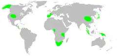 Les espèces de cette famille se rencontrent en Asie de l'Est, en Asie du Sud-Est, en Afrique subsaharienne, en Amérique, en Océanie et en Europe du Sud[1].