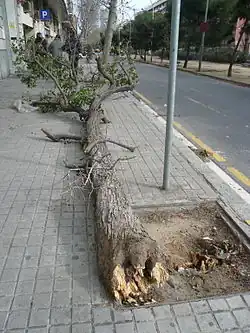 - À La Palma de Cervelló, dans la province de Barcelone, un employé municipal est tué par la chute d'un arbre le [37].