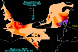 Tempête tropicale Chantal au-dessus de la péninsule du Yucatán | ||||||||