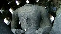 L'histoire débute par la descente glorieuse du seigneur Bouddha depuis le paradis Tuṣita et s'achève par son premier sermon dans le Parc aux Cerfs près de Bénarès[23]. Le bas-relief montre la naissance de Bouddha en tant que prince Siddhartha, fils du roi Shuddhodana et de la reine reine Mâyâ de Kapilavastu (l'actuel Népal).
