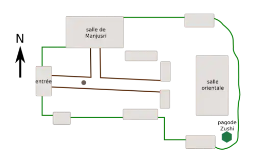 Selon un auteur du VIIe siècle, le monastère aurait été fondé sous le règne de l'empereur Xiaowen, à la fin du Ve siècle[2]. La pagode Zushi date d'environ 600, la salle orientale de IXe siècle et la salle de Majusri de 1137.