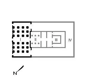 II : salle hypostyle / III : Le naos / IV : La galerie