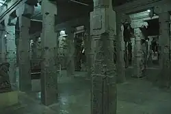 Le Aayiram Kaal mandapam (salle des mille piliers) contient en fait 985 piliers sculptés. Elle a été construite par Ariyanatha Mudaliar en 1569. C'était le Premier ministre et le général de Viswanatha Nayak, le premier Nayaka de Madurai (1559–1600). Il a également été le fondateur du système de Poligar, une organisation quasi-féodale du pays, qui était divisée en plusieurs palayams (provinces), chacune gouvernée par un palayakkarar. À l'entrée de la salle, se trouve la statue équestre d'Ariyanatha Mudaliar. Elle est périodiquement décorée de guirlandes par les fidèles. Chaque pilier de la salle est une sculpture originale de style dravidien. Les plus importantes sont celles de Rati (épouse de Kâmadeva), Kârttikeya, Ganesh, Shiva en tant que mendiant errant. On trouve aussi un grand nombre de yalis (figures mythiques de lions). Dans la salle, on trouve aussi un musée d'art avec les icônes, photographies, dessins, et autres pièces de l'histoire des 1200 ans du temple. En dehors de la salle, vers l'ouest, se trouvent des « piliers musicaux ». Chaque pilier, quand il est frappé, produit une note de musique différente.