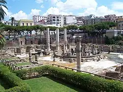 L'ensemble de bâtiments, appelés improprement « sérapéum » ou « temple de Sérapis » à la suite de la découverte ancienne d'une statue de cette divinité égyptienne, est le marché romain ou macellum de la cité de Pouzzoles.