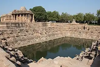• Rama Kunda ou Surya Kunda (littéralement « bassin de Rāma » ou « bassin de Sūrya ») : grand réservoir d'eau (bâoli) rectangulaire, de 50 par 20 mètres de côté, il était utilisé par les dévots pour effectuer les ablutions rituelles avec les prières. 108 sanctuaires miniatures sont sculptés à l'extérieur et à l'intérieur du bassin, 108 est un nombre considéré comme de bon augure par les hindous. Un grand torana, dont il ne reste aujourd'hui que deux piliers monumentaux, ouvrait sur le Sabha Mandapa.
