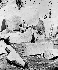 Le grès a été utilisé à l'origine pour les fondations. Au cours de la guerre de l'Utah qui opposa les mormons au gouvernement fédéral, les fondations ont été ensevelies pour les faire ressembler à un champ labouré afin d’éviter d’attirer l'attention des troupes de l'Union. Après que les tensions eurent diminué en 1858, les travaux reprirent mais on découvrit que de nombreuses pierres de la fondation s'étaient fendues, ce qui les rendait inutilisables. Le grès défectueux a été remplacé par le quartz monzonite (en) (ayant l'apparence du granit) de Little Cottonwood Canyon (en), située à 32 km au sud-est du temple. Ces pierres ont d'abord été transportées par des bœufs, puis, après l'achèvement du premier chemin de fer transcontinental en 1869, par le train à un rythme beaucoup plus rapide.