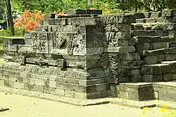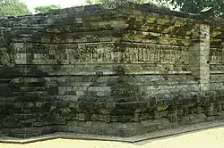 Le pourtour du temple est décoré de 14 panneaux de bas-reliefs : 3 sur la façade nord, 8 sur la façade ouest et 3 sur la façade sud, qui racontent l'histoire du Sudamala. Celle-ci raconte la purification de la déesse Durga, épouse de Shiva, qui est transformée d'un monstre malveillant, Uma, en une forme bienveillante par Sahadeva, l'un des jumeaux et le plus jeunes des frères Pandava dans l'épopée indienne du Mahābhārata.