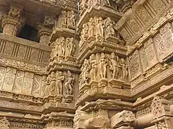 Le parikrama (vestibule) du sanctuaire présente ce que certains archéologues appellent les « plus frappantes sculptures de femmes à Khajurâho ».