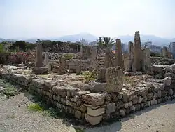 Le temple était peut-être dédié à Reshep, « dieu de la guerre et de la mort »[A 1]. Des figurines et d'autres objets ont été retrouvés[B 1]. Des figures de bronze sont pour certaines recouvertes d'une feuille d'or et ont été découvertes dans les fondations de l'édifice[C 3], dans des jarres[C 4]. Des ex-votos en forme d'ancre ont été retrouvés[C 4]. Les offrandes ont été enterrées pour libérer des emplacements destinés à de nouvelles offrandes[C 4].