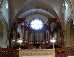 À l’intérieur se trouve un orgue de cinquante-deux jeux sur trois claviers et pédalier en traction, entièrement mécanique, réalisé par Dalstein-Haerpfer en 1903 puis modifié par Ernest Mühleisen en 1970. Cet orgue est l’un des instruments néoclassiques de la ville et il est régulièrement utilisé pour les concours du Conservatoire à rayonnement régional et pour de nombreux récitals, donnés par des organistes réputés[5]. Sa composition se détaille comme suit[6] :