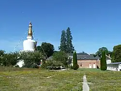 - ↑ Le dalaï lama devrait attirer les foules en France, Associated Press, 11 août 2008 : « Après avoir béni le plus grand stupa d'Europe bâti dans cette congrégation fondée en 1982, le dalaï lama -Tenzin Gyatso dans le civil- s'adressera au public avec un discours sur la paix. Un choix qui n'est pas innocent, un Temple pour la Paix étant en construction dans l'enceinte du centre ».