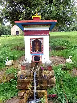 En 2014, Lama Gyourmé entreprend la création d’un moulin à prières actionné par l’eau des sources existant en amont du futur temple[13].