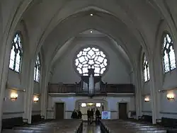 - L'orgue de tribune devant la rosace.