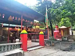 Kwan Tai Kung Le complexe du temple comprend trois temples répartis dans deux bâtiments : le premier bâtiment est un temple de Tin Hau, construit en 1737, auquel est ensuite ajoutée une annexe, abritant un temple de Kwan Tai[5] (à gauche sur l'image). Sur sa gauche, Shui Yuet Kung (en), construit en 1788, est dédié à Kwun Yam et au Dieu du sol[6]. |