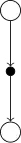 Diagramme ci-contre : Les algorithmes TD choisissent une action (le point), puis utilisent l'estimation de la valeur de l'état successeur (le cercle du bas) pour mettre à jour la valeur de l'état courant (le cercle du haut).