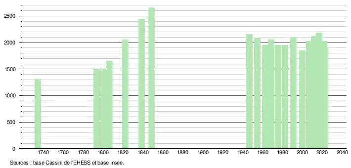 - ↑ Fiches Insee - Populations de référence de la commune pour les années 1734, 2006, 2007, 2008, 2009, 2010, 2011, 2012, 2013, 2014, 2015, 2016, 2017, 2018, 2019, 2020, 2021 et 2022.