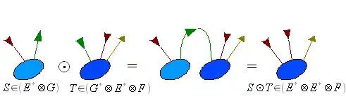 Si et sont représentées par les tenseurs et , alors l'application composée peut être représentée par le tenseur .