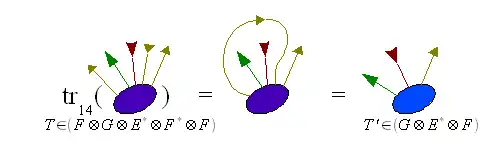 Un endomorphisme de peut être vu comme un élément , autrement dit un tenseur . La trace de cet endomorphisme vaut ; c'est-à-dire le résultat de la contraction de par rapport à ses deux indices.