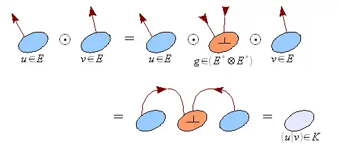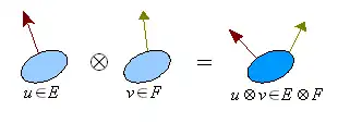 Comme en dimension finie , tout vecteur (respectivement ) peut être assimilé à une forme linéaire sur (respectivement ). On définit ainsi de manière générale le produit tensoriel de et , noté , comme forme bilinéaire sur .
