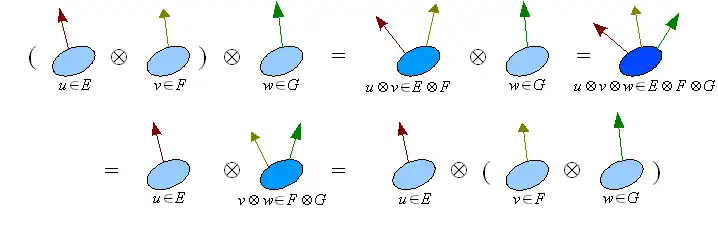 Les espaces vectoriels , et sont canoniquement isomorphes. Cette propriété permet de considérer le produit tensoriel comme associatif et d'assimiler le produit de k espaces de dimensions finies à l'espace des formes k-linéaires sur les espaces duaux. La mise en parenthèse est donc inutile :