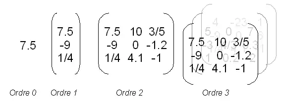 - Tenseurs d'ordre 3 et plus :