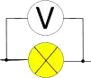 Schéma de l'utilisation d'un voltmètre pour mesurer la tension aux bornes d'une lampe.