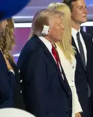 , sur Politico, (consulté le ). - ↑ (en) « Bandaged Trump gets rapturous welcome at Republican convention »
