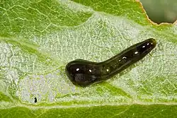 La larve ressemble à une petite limace. Elle est noire, d'aspect visqueux, avec la partie antérieure plus développée que le reste du corps, cylindrique. Elle mesure environ 6 millimètres de long.