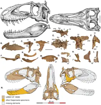 - ↑ (en) Stephen L. Brusatte et Thomas D. Carr, « The phylogeny and evolutionary history of tyrannosauroid dinosaurs », Scientific Reports, no 20252, (PMID 26830019, PMCID 4735739, DOI 10.1038/srep20252