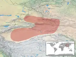 - en République populaire de Chine dans les provinces du Xinjiang, du Gansu et de Mongolie-Intérieure.