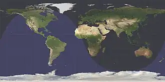 Cependant quand l’inclinaison sur l’écliptique devient nulle, l’équation ci-dessus du terminateur n’est plus valable[1], bien que ce soit encore un grand cercle perpendiculaire à l’axe planète-Soleil : le terminateur est alors simplement le méridien qui parcourt toutes les latitudes aux deux longitudes opposées de chaque côté du déphasage horaire.