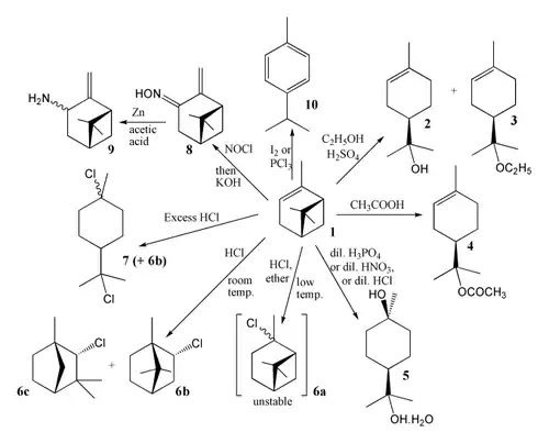 Ces composés sont des monoalcools tertiaires. Les terpinéols sont formés par l'hydratation des pinènes, en catalyse acide.