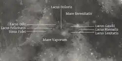 | Lacus Lenitatis | Lac de tendresse | 14, 12 | 80 |