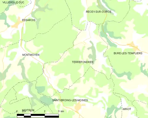 Terrefondrée est une commune française située dans le département de la Côte-d'Or, en région Bourgogne-Franche-Comté.