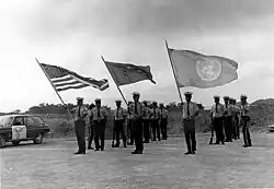 Le , les États-Unis reçoivent mandat du Territoire sous tutelle des îles du Pacifique. Il comprend les Îles Marshall, les îles Mariannes et les Îles Carolines tenues auparavant par les Japonais dans le cadre du mandat des îles du Pacifique. L'ONU désigne cette curatelle comme stratégique, ce qui permet aux États-Unis d'aménager des installations militaires. En retour, ils doivent promouvoir le développement politique, économique, social et éducatif des populations locales. Ils doivent également favoriser le développement d'institutions politiques devant aboutir à l'autonomie gouvernementale voire à l'indépendance. Les États-Unis ne sont redevables de leur action qu'auprès du Conseil de sécurité où ils possèdent un droit de veto[WS 2].