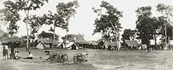 Avec l'appui des chefs locaux, les Français réussirent en 1892/1893 à expulser Samory Touré des régions du haut Niger et à le repousser vers le sud jusqu'au haut de la Volta Noire. Ici, Samory a fondé un nouvel État islamique avec Dabakala comme capitale, après que l'émergence de ses gangs de sofas meurtriers et pilleurs[6] ait auparavant conduit à un certain dépeuplement dans de grandes parties de son nouveau « territoire d'État ». Une grande partie de la population avait été soit tuée, soit vendue comme esclave. La traite des esclaves constituait le fondement économique (à peu près le seul) du système étatique de Samory. Au début de 1895, Samory Touré et son armée envahirent le royaume de Kong[7] au sud de sa nouvelle domination. La ville commerçante autrefois florissante de Kong (la capitale du royaume du même nom), qui comptait auparavant 20 000 habitants, a été réduite à des décombres fumants après le massacre des gangs de sofas de Samory. C'est arrivé à beaucoup d'autres endroits dans cette région. Dans l'arrière-pays Ashanti, il y a également eu des escarmouches précoces entre les troupes de sofas de Samory et des unités militaires britanniques dans la première moitié de 1896, particulièrement concentrées dans la région de Wa et dans la région de Banda. De nombreuses localités furent conquises par les uns et reprises peu de temps après par les autres. A cela s'ajoutaient les escarmouches constantes entre les sofas et les Français dans le nord, qui poussaient Samory toujours plus au sud. Mais ce n'était pas le seul domaine de tension. La situation politique dans les Territoires du Nord a été encore compliquée par la concurrence britannique et française sur la question du territoire Gourounsi. D'une part, chacun voulait planter son propre drapeau ici, mais d'autre part, ils voulaient aussi empêcher une éventuelle invasion des Allemands, qui avançaient de l'est. En juin 1896, au cours des combats de Samory, Wa est occupée par les troupes françaises. Cela a déclenché la sonnette d'alarme parmi les Britanniques, qui se sont précipités pour parvenir à un accord avec Samory, mais ont échoué. Du point de vue britannique, une guerre ouverte sur deux fronts menaçait, qu'ils tentèrent de contourner en forçant Samory à une action directe, qui tenta cependant indirectement de combattre les Français sans avoir à déclarer la guerre à la France. Londres autorise alors le gouverneur en juin 1896 à prendre Bondoukou[8] par la force si nécessaire. Le prétexte officiel était de mettre fin aux activités des Samory par tous les moyens nécessaires.
